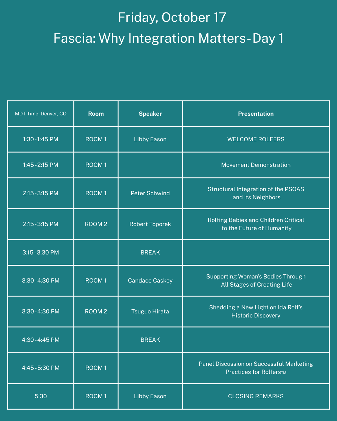 Be part of a historic event! The Dr. Ida Rolf Institute invites you to its Online Global Summit this October, a pivotal gathering for the worldwide Rolfing community. Connect with fellow practitioners and explore the latest advancements in Rolfing® alongside our international partners from Japan, Europe, Brazil, & Canada.